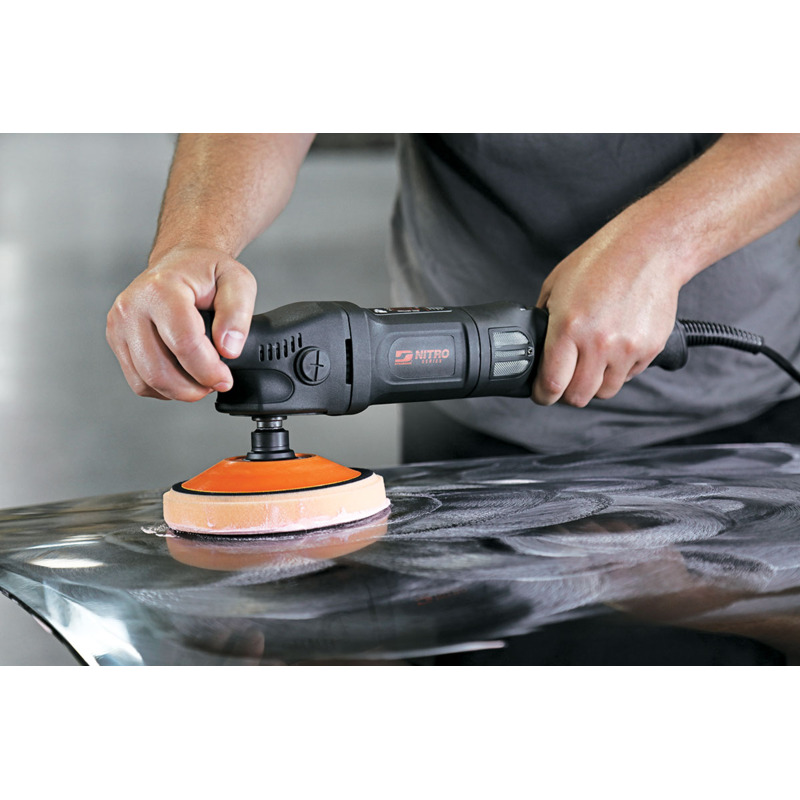 Well balanced, right angle tool configuration provides easy operator control Thumb controlled variable speed dial offers six speed selection options between 800 - 3000 RPM